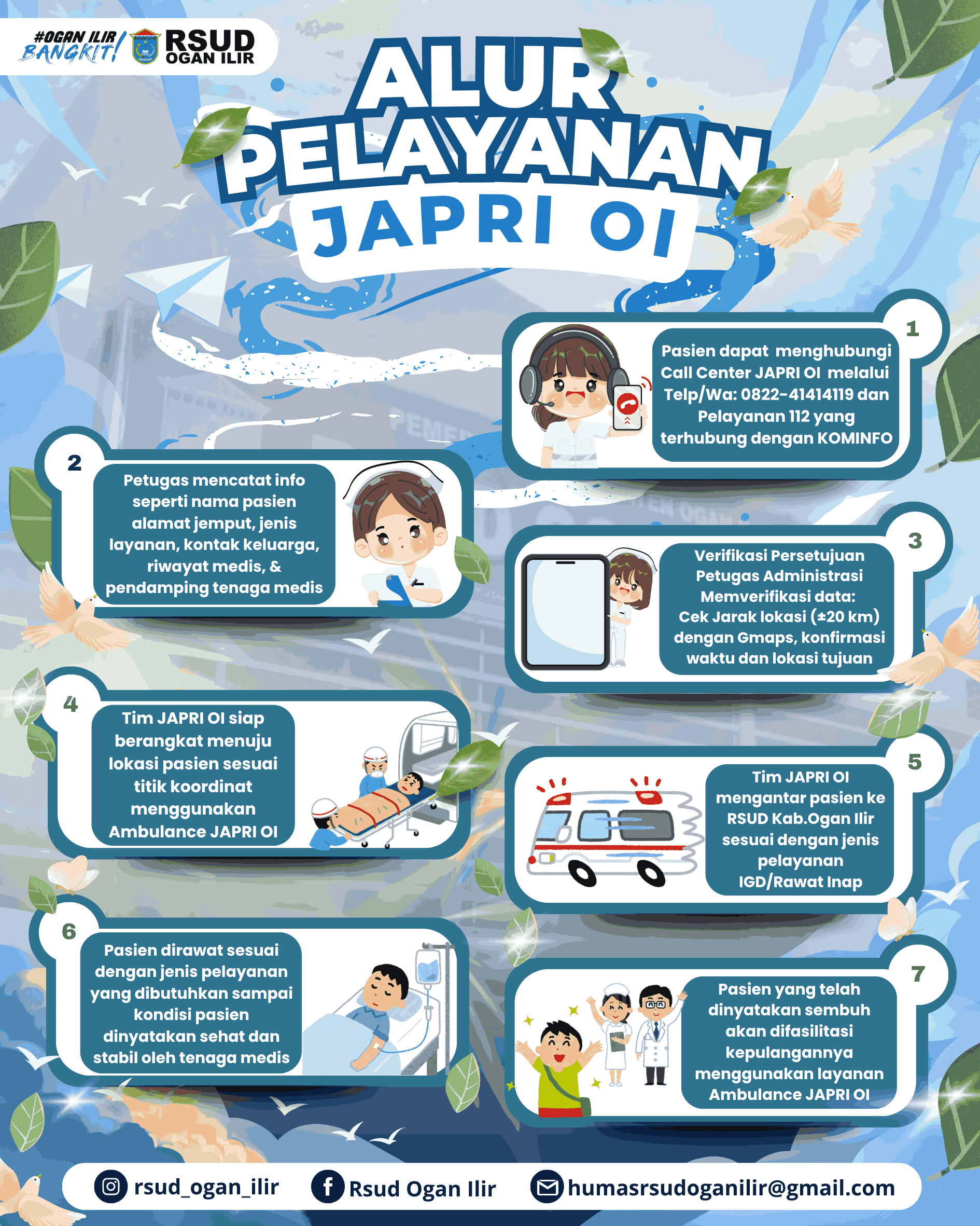 Layanan ini ditujukan untuk pasien yang mengalami kesulitan akses transportasi ke rumah sakit, terutama warga yang berdomisili di wilayah terpencil. Dengan cakupan jarak tempuh hingga ̢̮â¬Å¡Ãâñ20 kilometer, pasien dapat dijemput langsung dari rumah menuju RSUD OI dan diantar kembali setelah menyelesaikan perawatan dengan menghubungi nomor JAPRI OI 0822 41 41 41 19 atau melalui layanan KOMINFO 112.